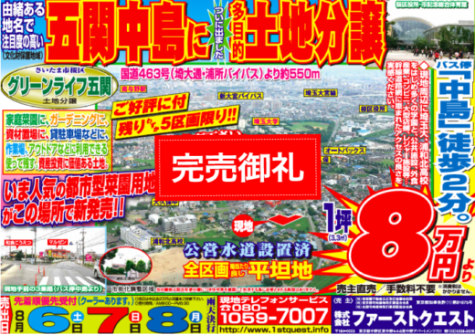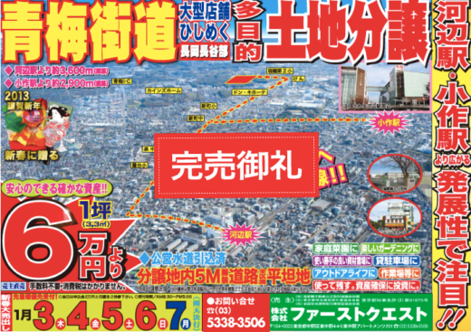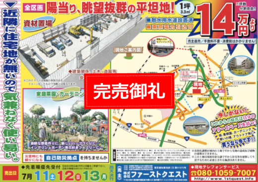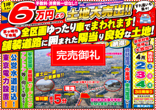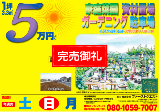 所沢ニュータウン近く 1坪5万円より 多目的土地として分譲 […]