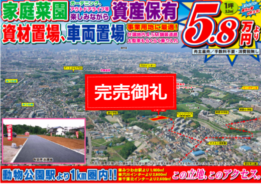 動物公園駅より1km圏内!!家庭菜園、資産保有、資材置場、車 […]